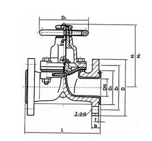 四、G41F46襯氟隔膜閥 外形尺寸圖
