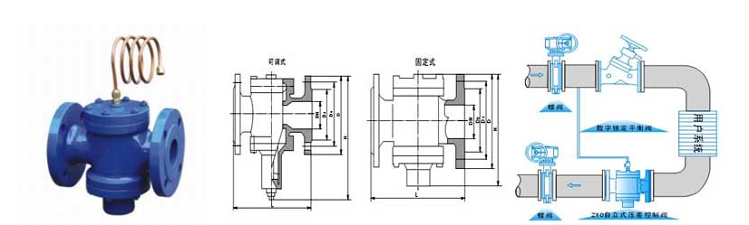 該閥為雙閥瓣結構,閥桿不平衡力小,結構緊湊,用于供熱(空調)水系統中,恒定被控系統的壓差,并有以下的特點(diǎn):