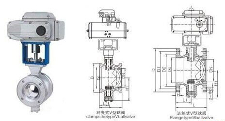 VQ947電動(dòng)V型球閥 法蘭式外形尺寸圖