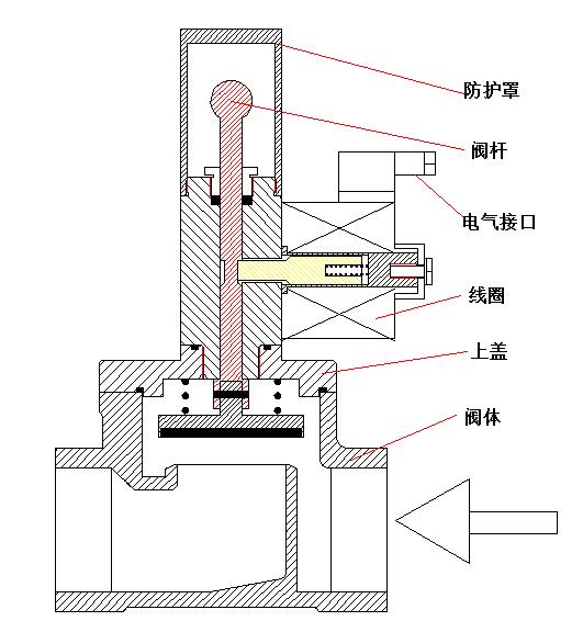 開(kāi)啟時(shí),先將手動(dòng)裝置提到位,再通上電源即可。缺點(diǎn)為停電情況時(shí)電磁閥不能打開(kāi)。